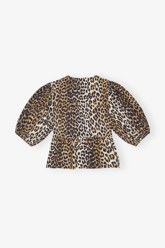 UitverkochtPRINTED COTTON POPLIN PEPLUM BLOUSE LEOPARD
