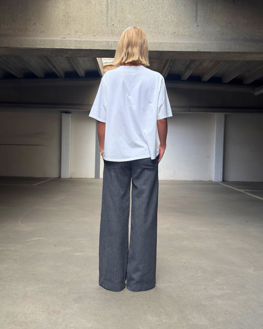 UitverkochtWOODY PANTS FLANEL WOOL PIN STRIPED DARK GREY