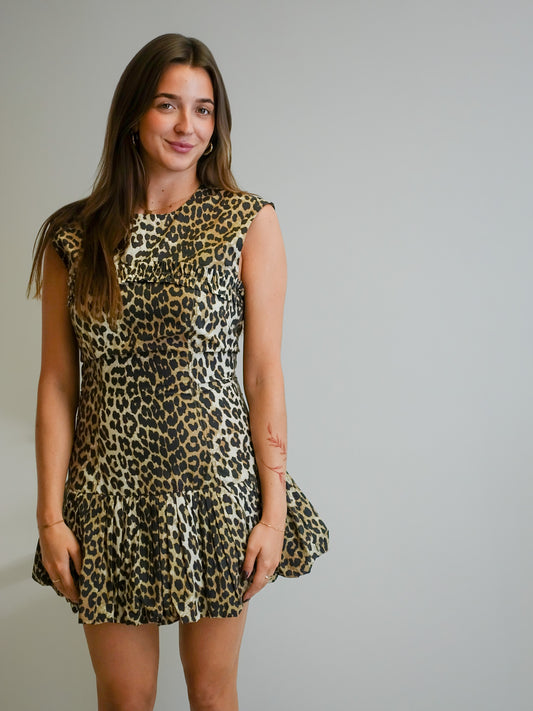 PRINTED COTTON CORSET MINI DRESS LEOPARD