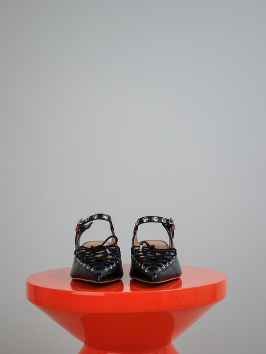 EYELETS LACE UP MULE CRINKLE OLEATEX BLACK