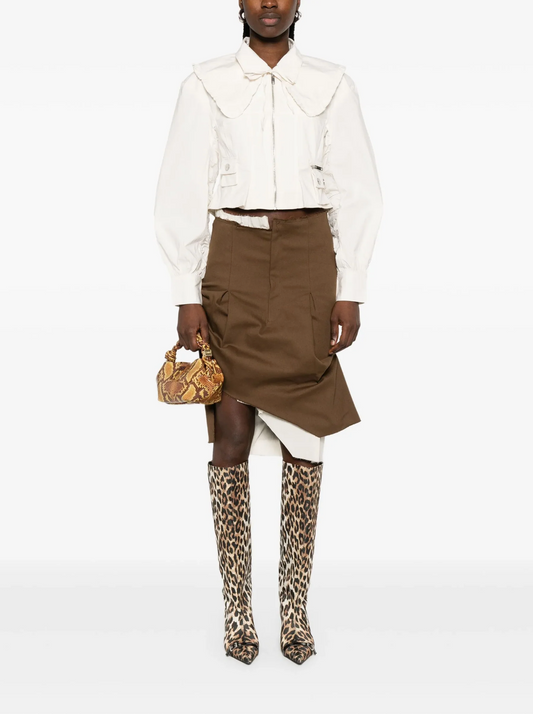 WASHED STRETCH COTTON BOMBER CORSET SHIRT EGRET