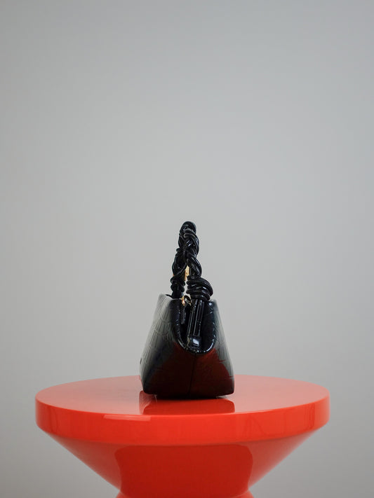 GANNI BOU BAG SMALL PATENT CROCO BLACK