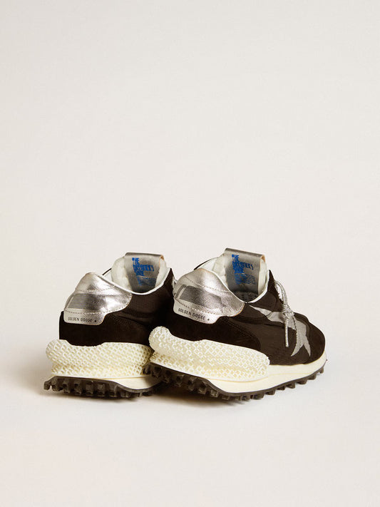 RUNNING MARATHON NYLON UPPER SUEDE TOE ANND SPUR PRINTED STAR LAMINATED HEEL BLACK/SILVER
