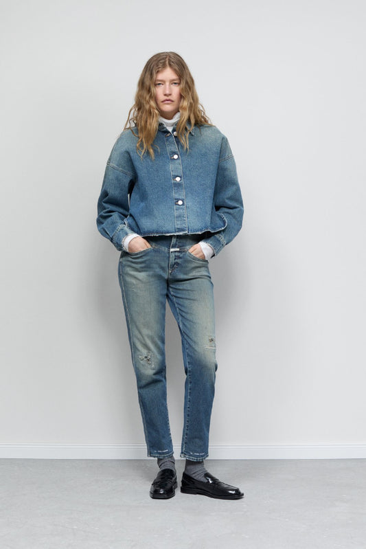 HEAVY WASHED DENIM CARPENTER JEANS MID BLUE VINTAGE