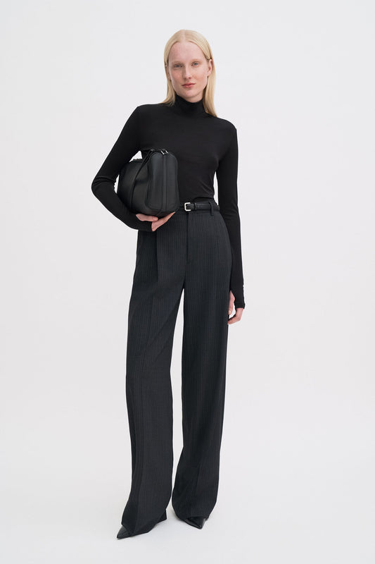 DARCEY PINSTRIPE TROUSERS ANTHRACITE MELANGE