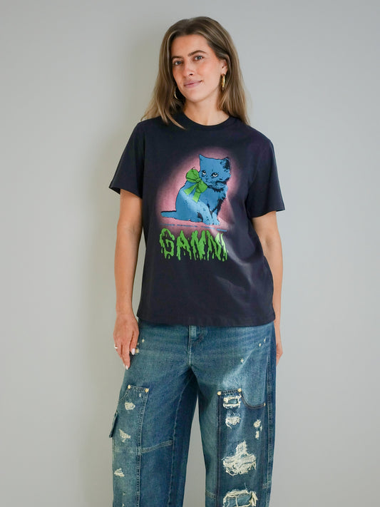 BASIC COTTON JERSEY NEON KITTY T-SHIRT PHANTOM
