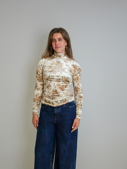 PRINTED VELOUR JERSEY TURTLENECK CLOUD CREAM