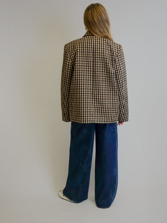 CHECK WOOL MIX OVERSIZED BLAZER CHICORY COFFEE