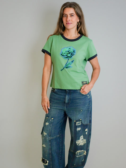 BASIC COTTON JERSEY PEONY BABY FIT T-SHIRT STONE GREEN