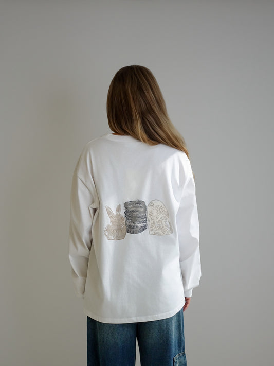 RE-CUT HEAVY JERSEY ANIMALS LONG SLEEVE BRIGHT WHITE