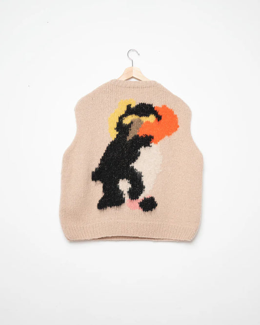 DUCK, PINGUIN HAND KNITTED VEST BEIGE