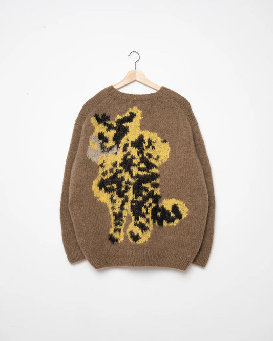 ELEPHANT, CHEETAH HAND KNITTED SWEATER BROWN