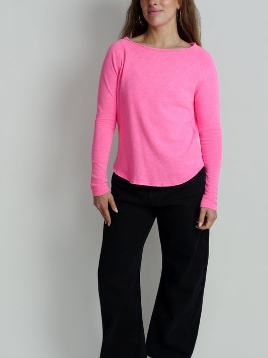 SHREDDED SEAM DROP NECK SHIRT ORANGE PURPLE PLAID