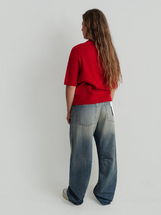 DARA SHORT-SLEEVE CREWNECK TOP RED