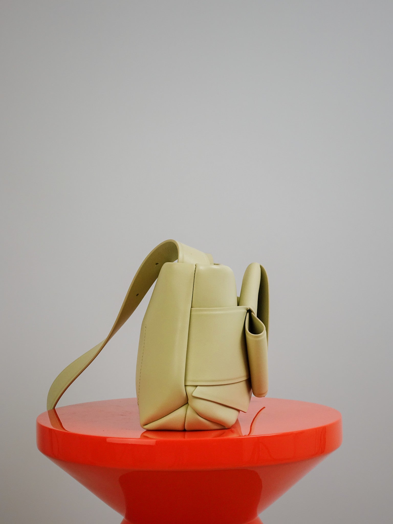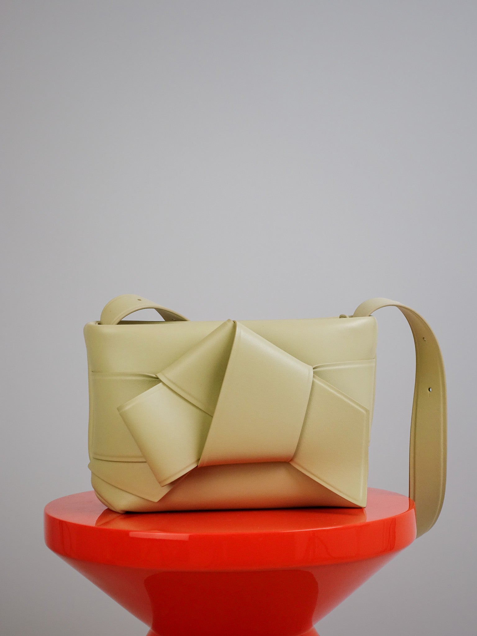 Deze tas heeft een iconisch Musubi knoopdetail en is vervaardigd uit hoogwaardig leer.