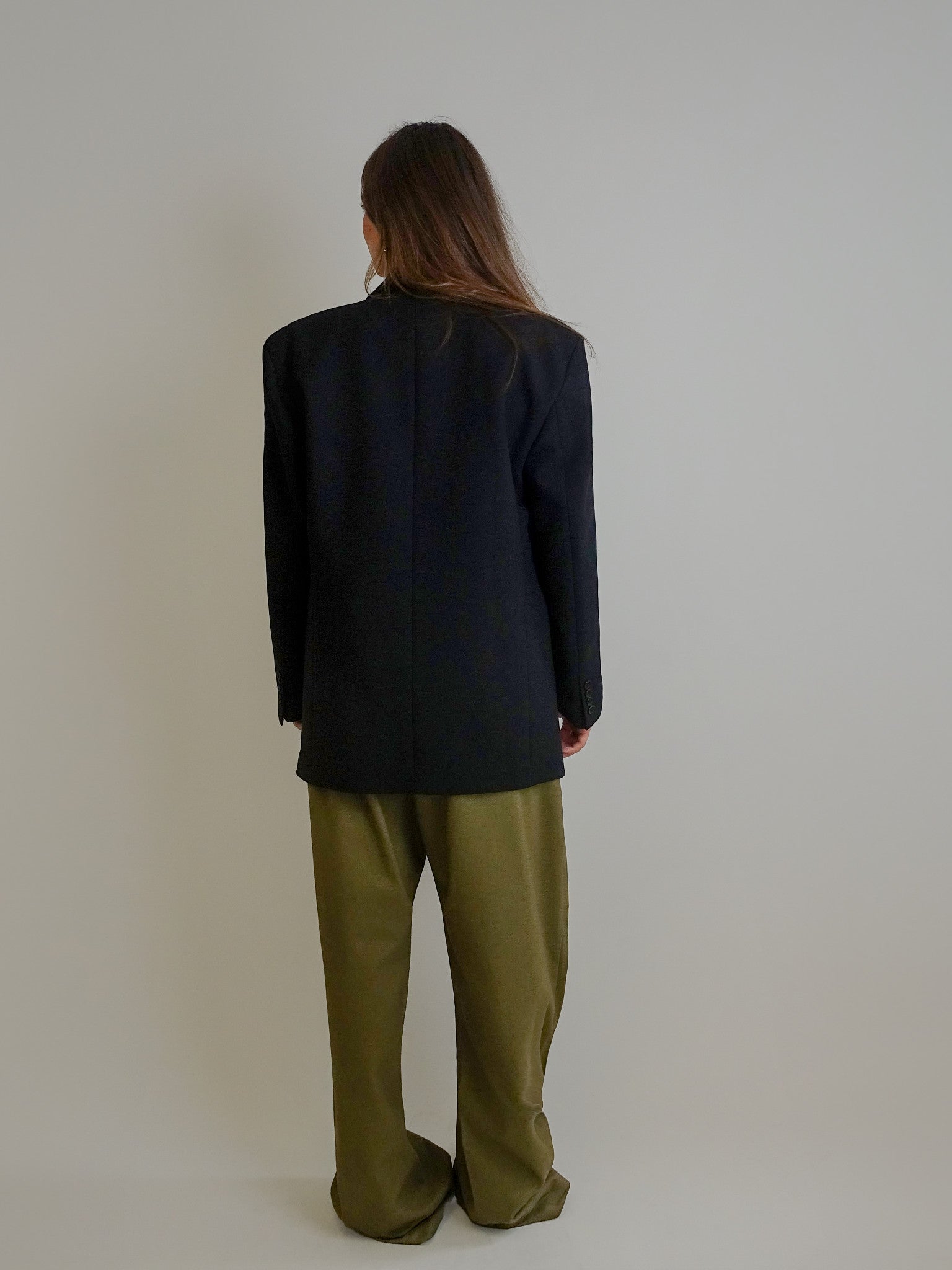 Deze zwarte oversized blazer is een tijdloze essential voor elk seizoen. De lichte vulling in de schouders creëert een krachtig silhouet, terwijl de soepele viscosemix elegant meebeweegt. Een veelzijdig item dat moeiteloos klasse en moderne nonchalance combineert.