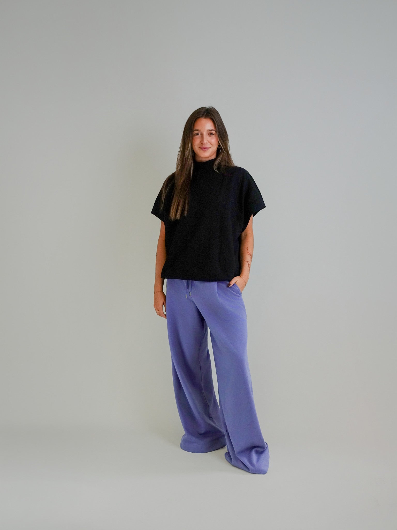 Deze trui heeft een comfortabele pasvorm en een diepe zwarte kleur die kracht en veelzijdigheid uitstraalt. Het zachte materiaal biedt warmte en draaggemak, terwijl de ingetogen afwerking zorgt voor een tijdloze stijl die moeiteloos bij elke look past.