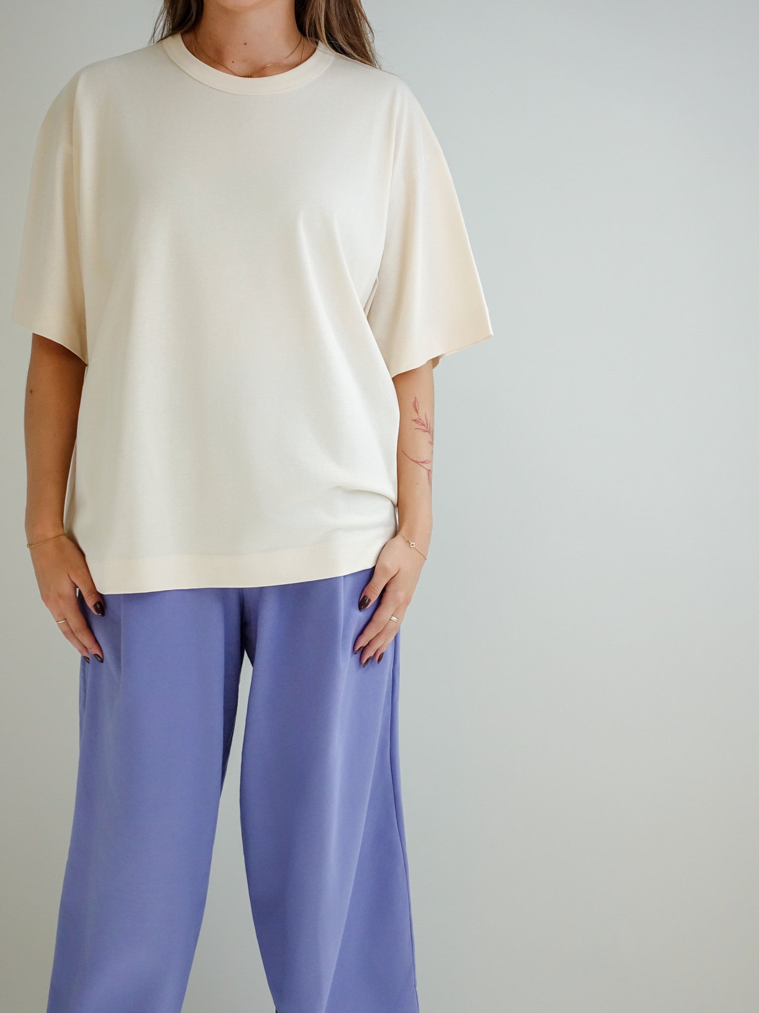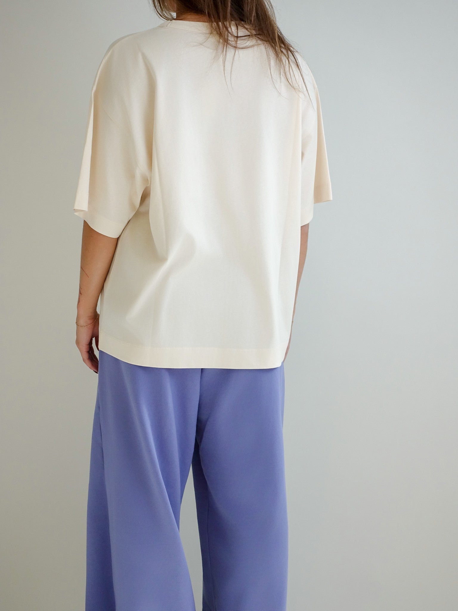Dit T-shirt heeft een relaxte pasvorm en een verfijnde ecru tint die moeiteloos combineert met elke garderobe. Het lichte materiaal voelt zacht en comfortabel aan, waardoor dit item ideaal is als veelzijdige basic met een moderne, tijdloze uitstraling.
