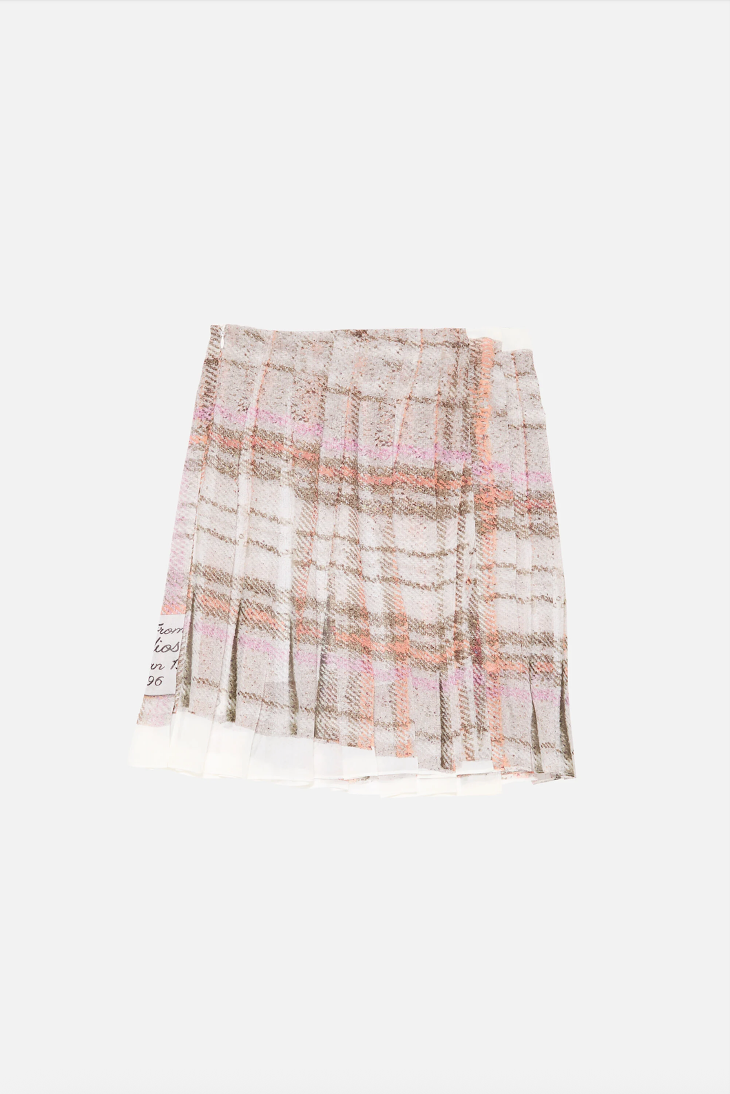 Dit item in een verfijnde grijs-roze ruitprint brengt een speelse, artistieke vibe naar je garderobe. De lichte, gerecyclede stof en de knielengte zorgen voor een luchtig en vrouwelijk silhouet. Een uniek ontwerp met subtiele logo-animaties dat moeiteloos een moderne twist geeft aan je dagelijkse outfit.