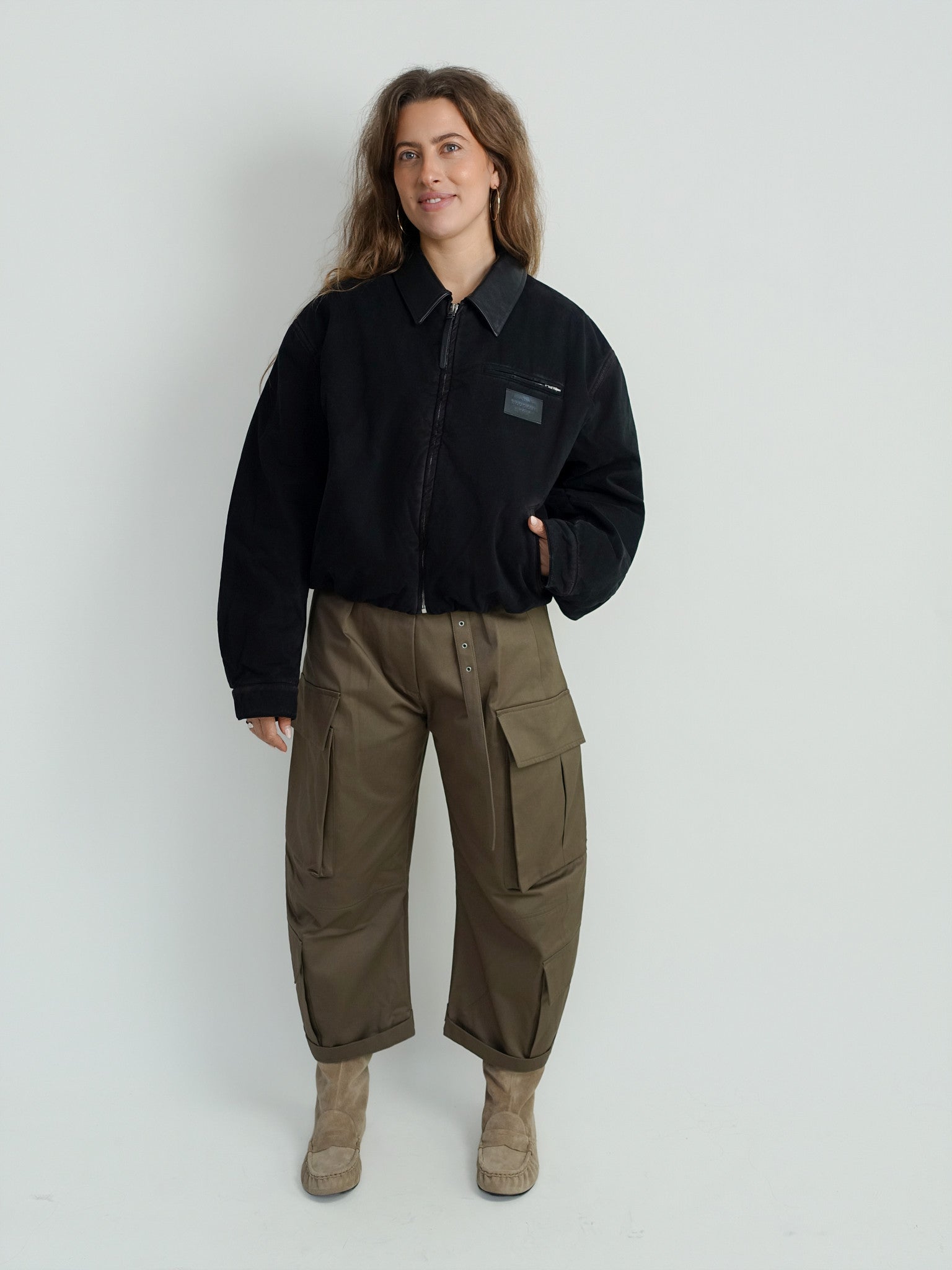 Deze jas in diepbruin is vervaardigd van een stevige, hoogwaardige stof die bescherming en stijl biedt. Het ontwerp is strak en functioneel, met oog voor detail in de afwerking. Een robuust maar elegant item dat een modern silhouet creëert en jarenlang meegaat.