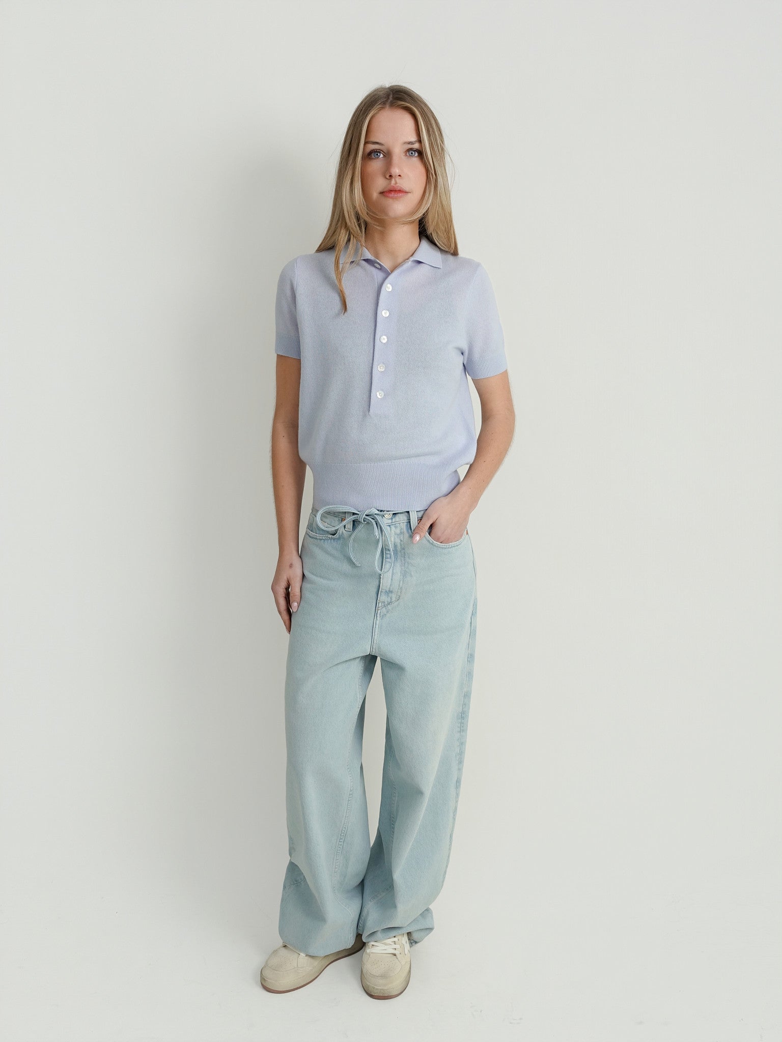 Een stijlvolle polo in een rustige blauwtint, vervaardigd van een hoogwaardige wol-kasjmiermix. Het materiaal voelt uitzonderlijk zacht aan en de nauwkeurige afwerking weerspiegelt een tijdloze en zelfverzekerde stijl.