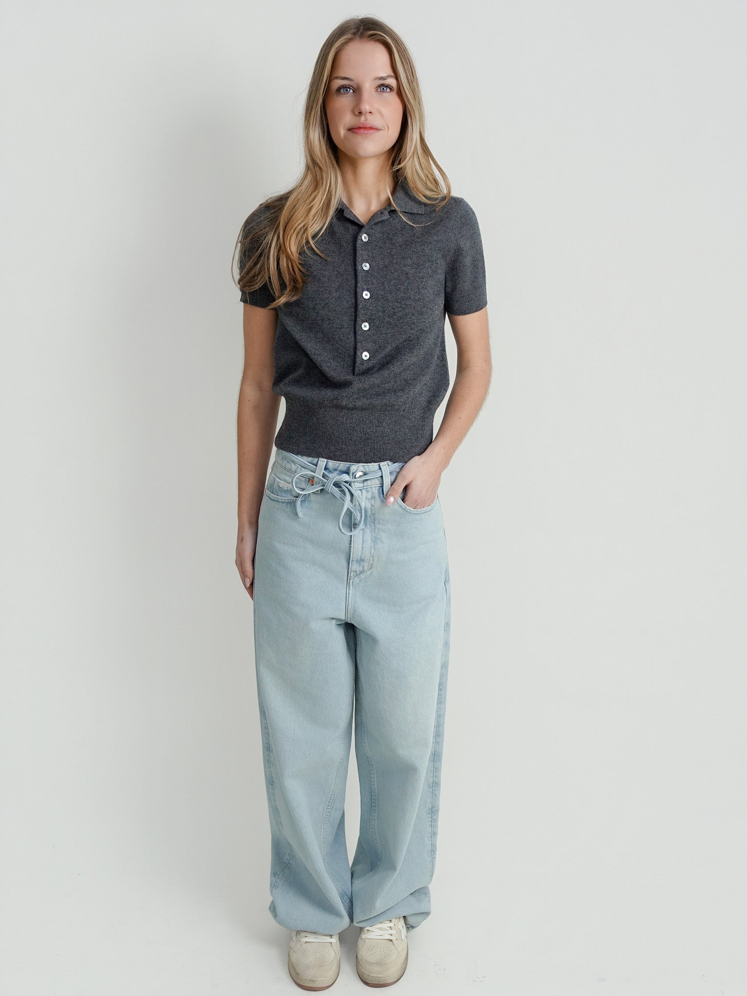 Deze polo combineert een klassieke kraag met de luxe van wol en kasjmier. De grijze kleur en de verfijnde pasvorm zorgen voor een moderne en ingetogen uitstraling die zowel zakelijk als ontspannen gedragen kan worden.