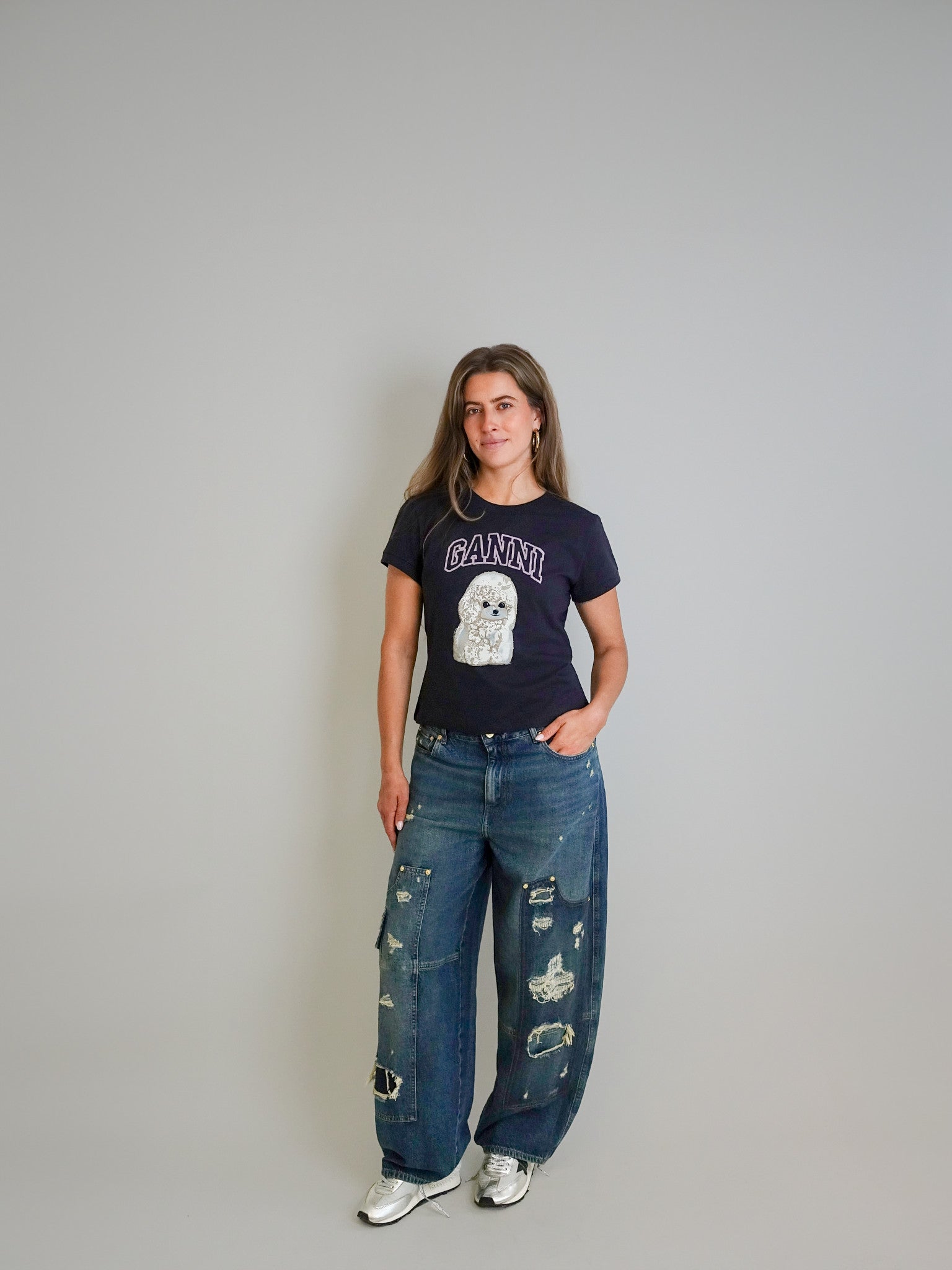 Dit cropped T-shirt met speelse poedelprint voegt een frisse en eigenzinnige touch toe aan je look. Het zachte katoen voelt comfortabel aan en geeft een flatterende pasvorm. Ideaal om casual te dragen, maar ook krachtig genoeg als opvallend statement item.