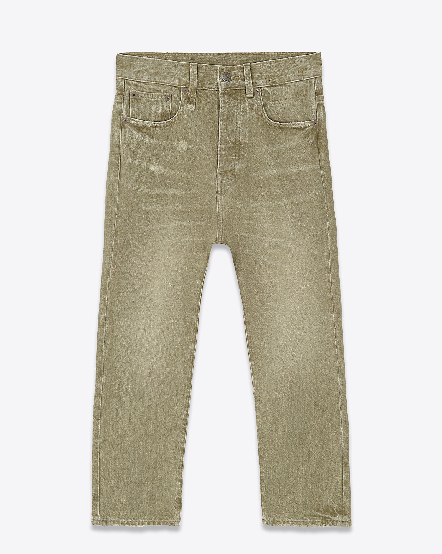 Deze eigentijdse jeans in een zachte khakikleur heeft een ontspannen pasvorm met een verlaagde kruisnaad en een taps toelopend silhouet tot op de enkel.