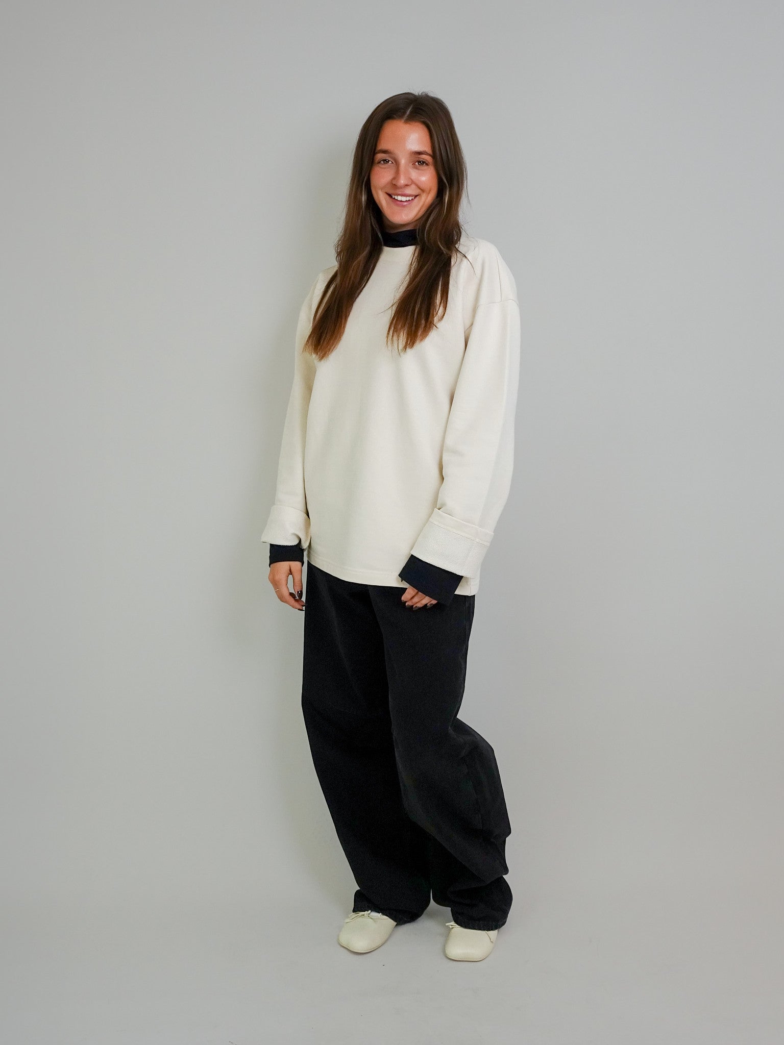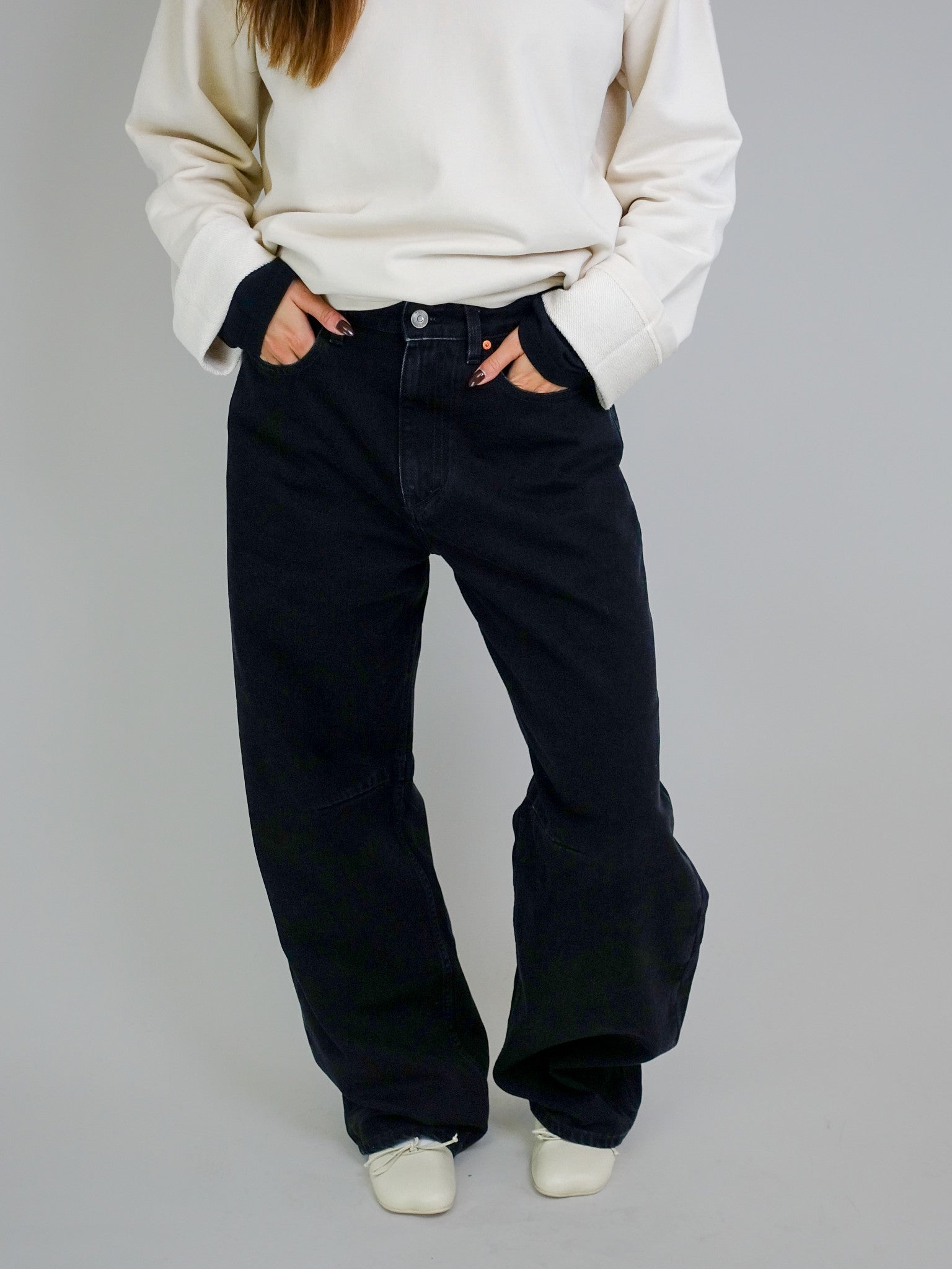 Zwarte jeans met rechte pijp en hoge taille die flatteert zonder moeite. De diepe wassing en stevige denim geven dit model een tijdloze uitstraling met een krachtige, zelfverzekerde fit voor elke dag.
