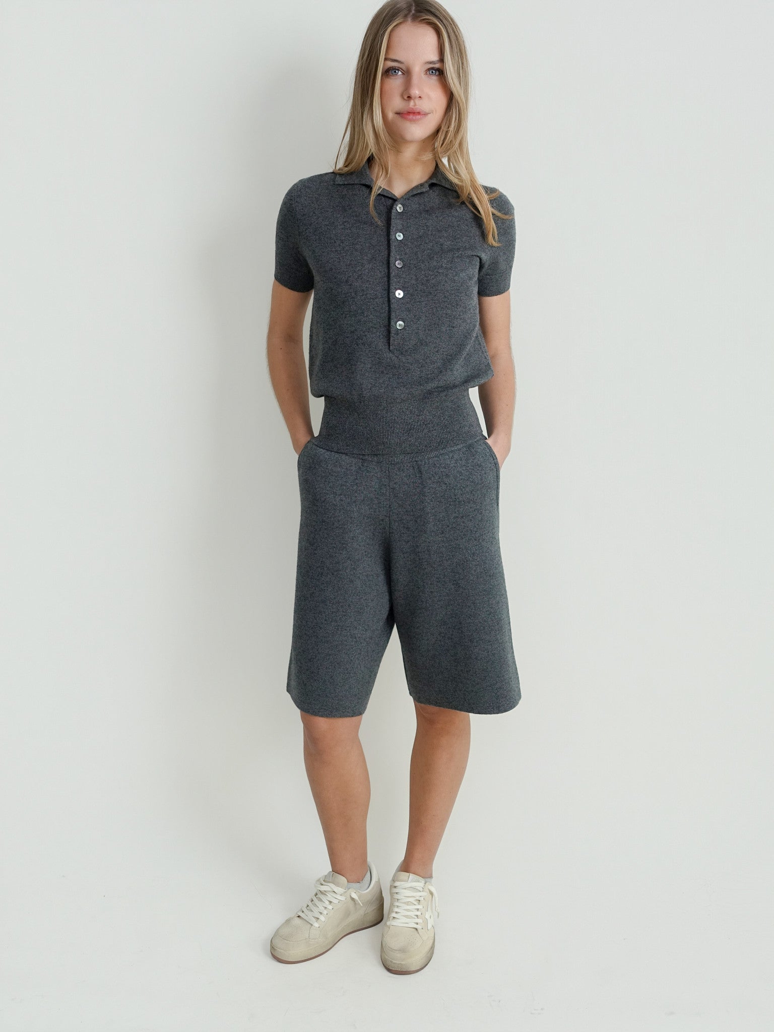 Deze short combineert het comfort van wol en kasjmier met een modern silhouet. De grijze kleur en de zachte textuur zorgen voor een ingetogen maar krachtige uitstraling die ideaal is voor een ontspannen zomerdag.