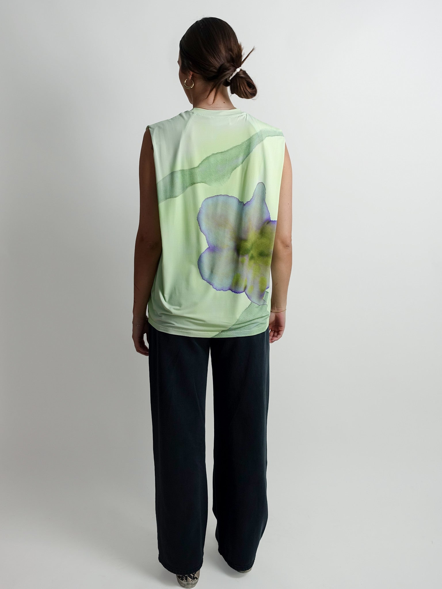 Deze mouwloze jersey top in de opvallende Citrine Ophelia print is een artistieke toevoeging aan je zomergarderobe. Het vloeiende materiaal en de levendige kleuren geven je outfit direct een energieke boost. Een modern en veelzijdig item dat prachtig combineert met een strakke pantalon voor een krachtig statement.