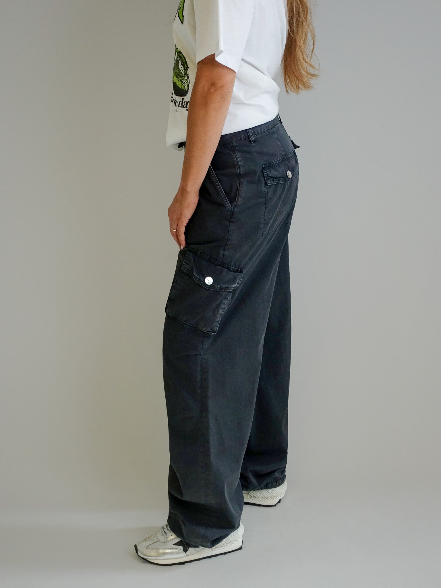 Deze cargobroek in gewassen katoen twill is een veelzijdige toevoeging aan elke garderobe. Het ontwerp heeft een relaxte pasvorm en is voorzien van riemlussen, een ritssluiting met knoop en een subtiel steekzakje aan de voorkant.